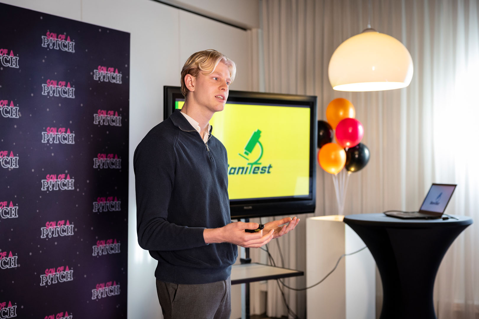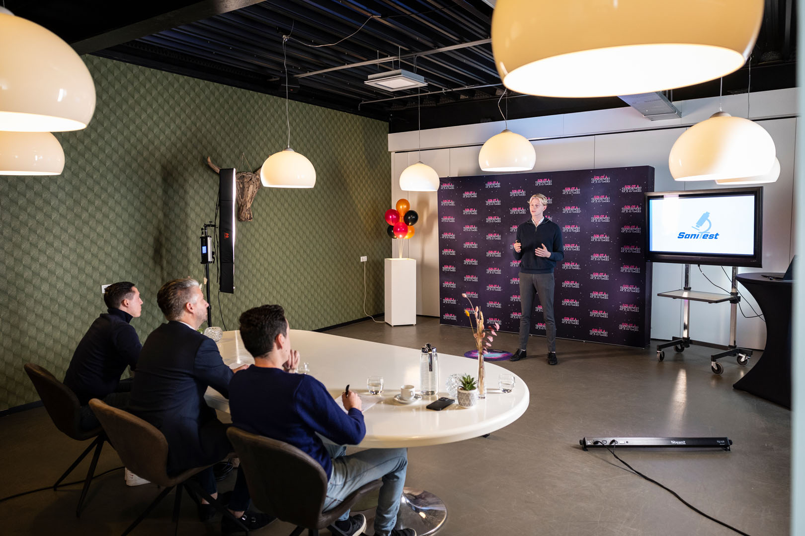 Dit jaar pitchten de ondernemers bij Studio Boxx in Nuenen. Met een krachtige pitch probeerden ze de driekoppige jury te overtuigen waarom hun concept die hoofdprijs verdient in de vorm van 2.500 euro marketingbudget.